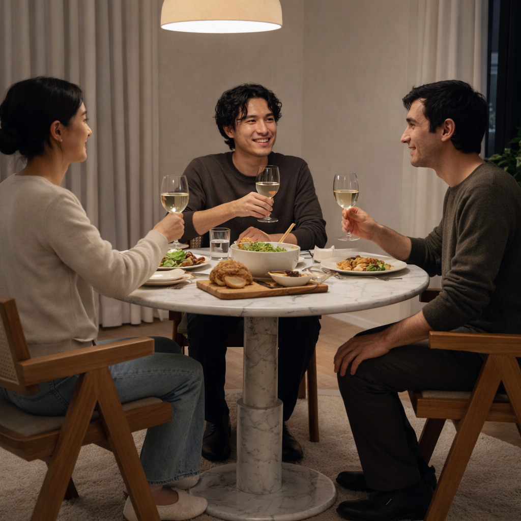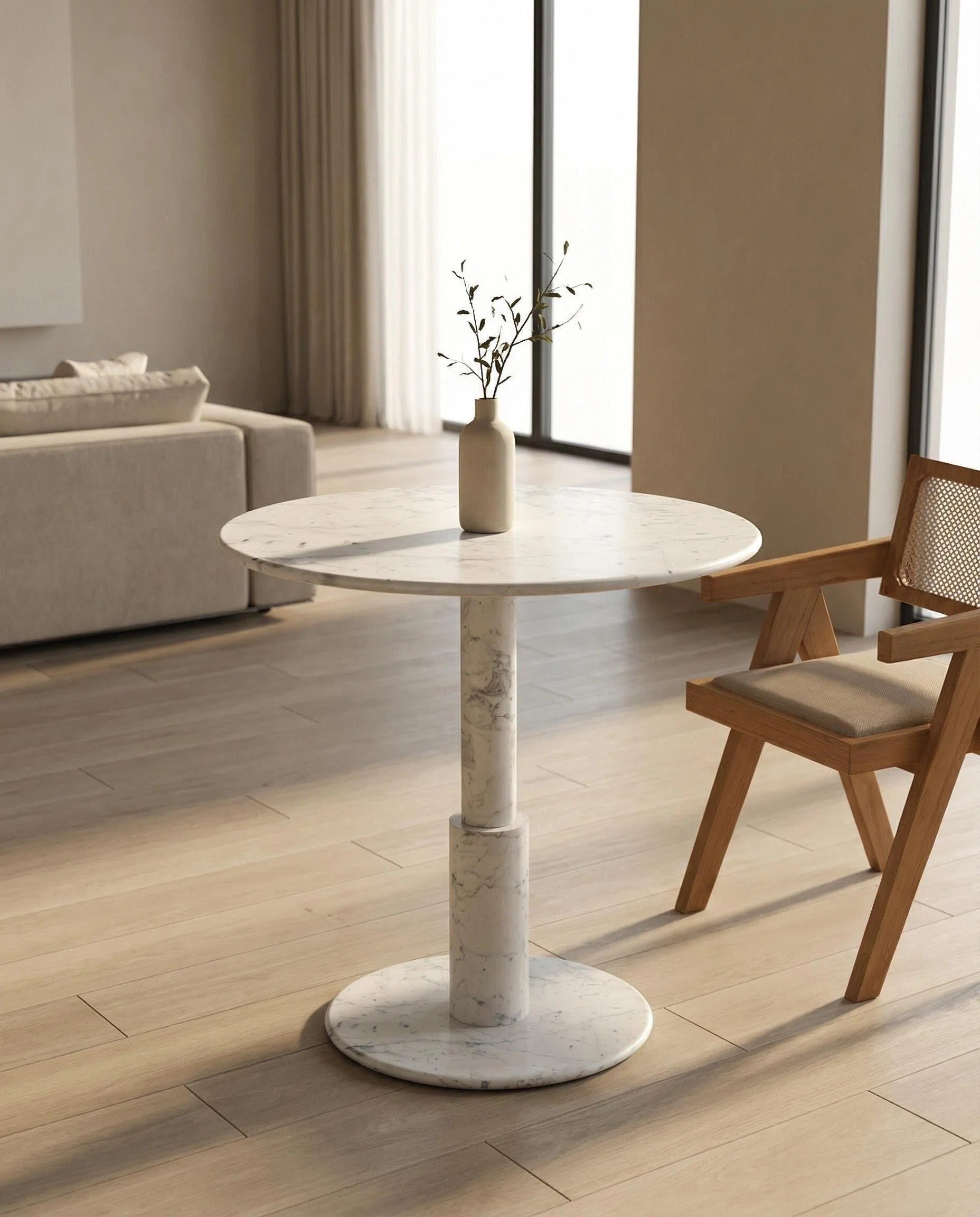 Mesa auxiliar de mármol blanco CloudDream - Luces de noche y carga inalámbrica